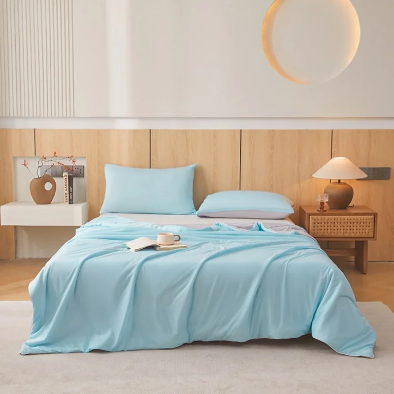 1pc Cooling Summer Quilt,Blue Grey AB Side Cool Feeling Comforter.Smooth,Skin-friendly Blanket Home Kids Adult Bedding 150*200cm